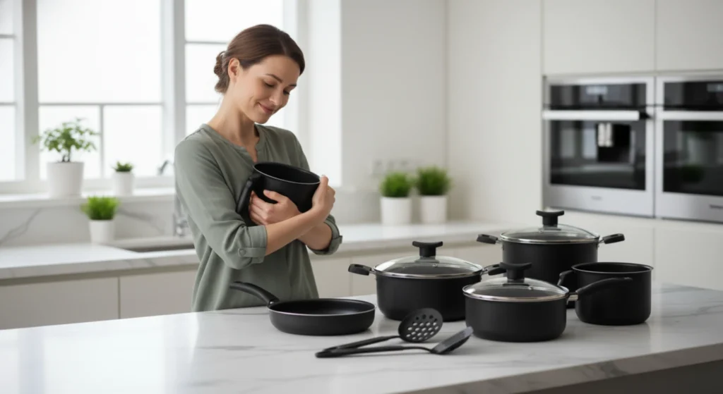 A limpeza também se destaca: panelas com antiaderente de qualidade exigem apenas uma esponja macia e detergente neutro, tornando a rotina pós-refeição muito mais leve. Além disso, a maioria dos conjuntos pode ser levada à lava-louças, otimizando ainda mais o dia a dia.