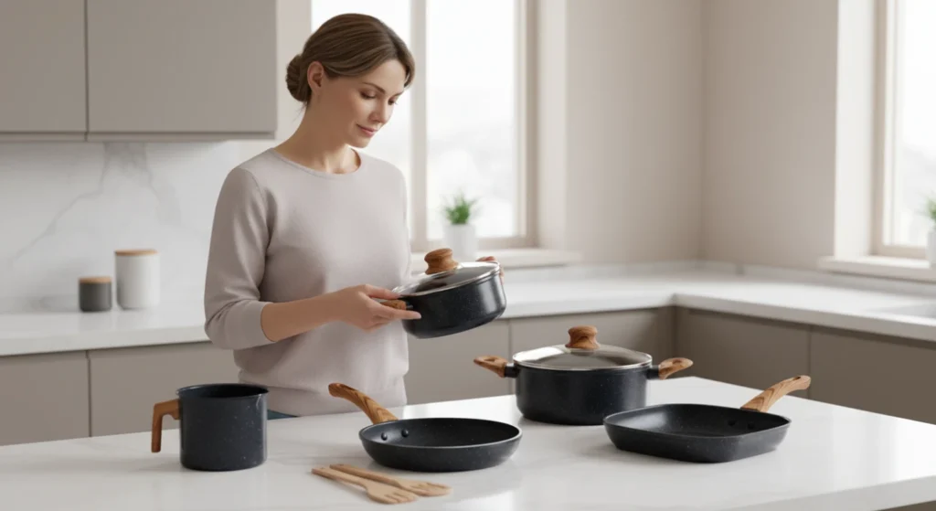 Considere também a praticidade: tampas de vidro, cabos antitérmicos e panelas que podem ir ao forno ampliam a versatilidade. Prefira modelos livres de metais pesados e substâncias tóxicas, sempre conferindo se as panelas são compatíveis com seu tipo de fogão, inclusive indução, se for o caso.